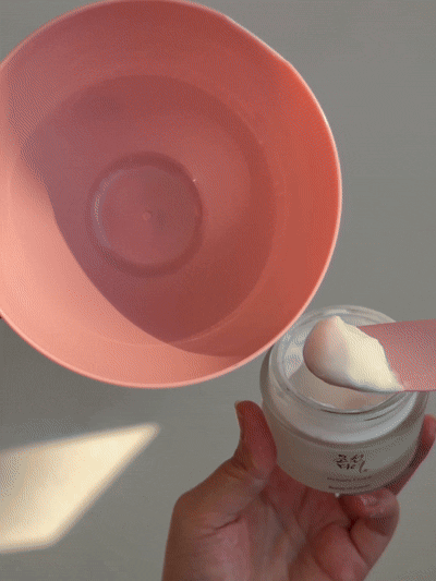 To start, combine Ginseng Essence and Dynasty Cream to form a leave-on mask. Mixing before applying results in a supercharged skincare step, perfect for when you want to maximize the benefits of both products. You can do this in a small, clean bowl, or on clean hands. We recommend starting with a coin-sized scoop of Dynasty Cream and just a few drops of Ginseng Essence Water for an easily spreadable consistency thatโs not too runny. Apply it evenly all over your face with a silicone brush or clean fingers, focusing on the areas that are most dry or rough.