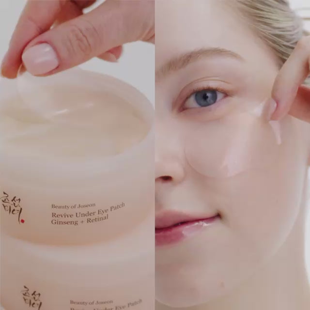 A rejuvenating hydrogel eye patch infused with ginseng water, retinal, and pearl glow to visibly firm, under-eye clarity Improvement, and smooth wrinkles, puffiness, and dark circles.